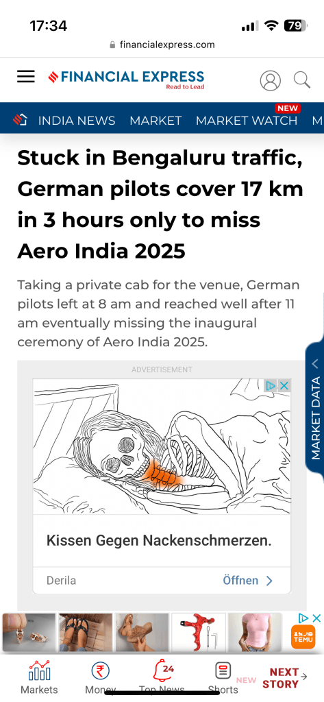 Deutsche Piloten hingen im Straßenverkehr von Bengaluru fest und haben ihren Einsatz bei der Airshow verpasst und … sind dann auf der Rückbank weggenickt und hatten kein Kissen dabei?