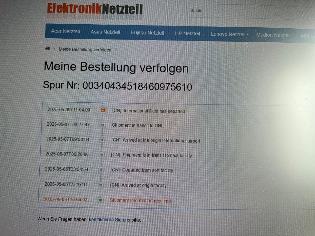 Da ich neulich mein Netzteil in Prag versemmelt habe, musste ich ein neues bestellen. Mir war nicht klar, dass das nur für mich aus Asien kommt, aber das war immer noch billiger/einfacher, als es von Prag nach Berlin zu schicken. Also konnte ich „Spuren“ verfolgen.