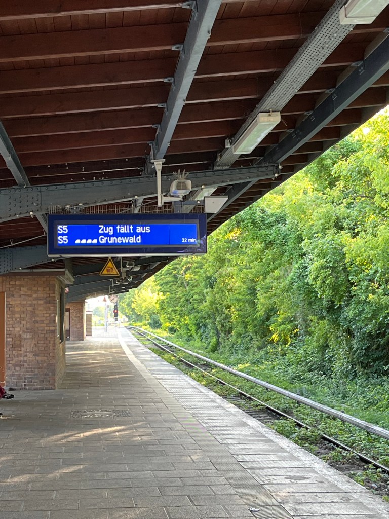 Hier blieb stiegen gestern mal kurz Puls-und Blutdruck. Also hockte ich mich auf die harte Bank, hörte Podcast …und nahm zwei Minuten später … hinter mir … auf dem anderen Gleis … eine S-Bahn war … eine S5. Nu‘ aber hopp!!