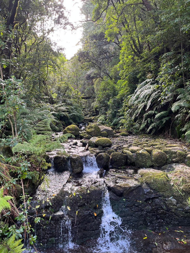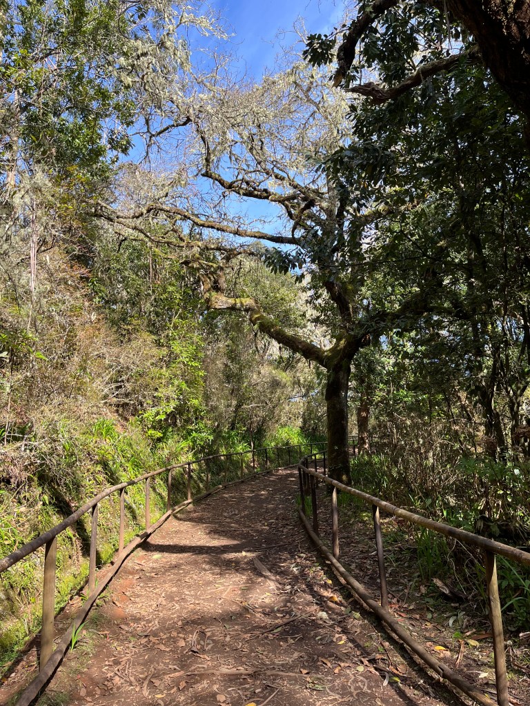 Der Pargue Florestal do Pico das Pedras liegt etwas abgelegen, aber es gibt einen „Wanderweg für alle“ (Um caminho para todos) dort. Das klingt mir und meinem Knöchel sehr inklusiv, also watscheln wir den einmal hin und wieder zurück. Auch hier war alles super grün, fast schon tropisch.