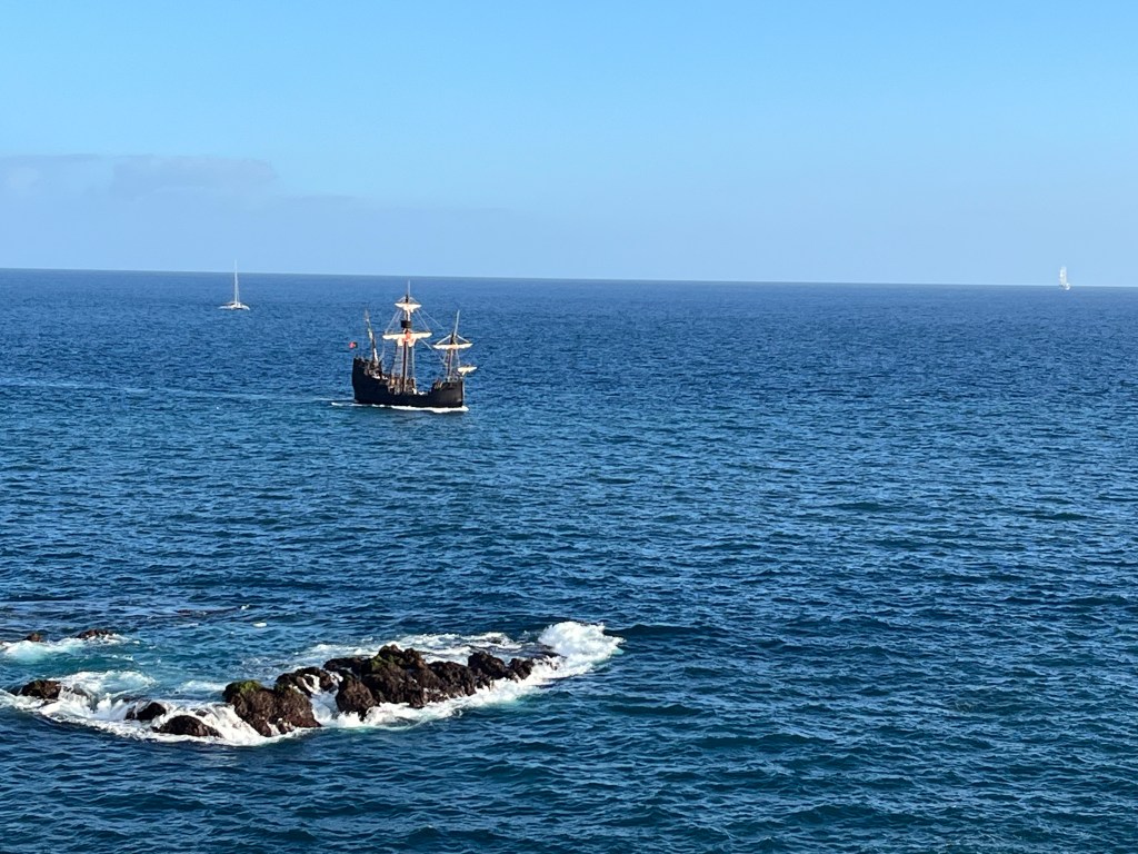 Ein letzter Marsch runter ans Wasser und dann fuhr uns noch mal der Nachbau der Santa Maria vor die smarte Flinte. Wenn man das Schiff so fahren sieht, scheint es noch unglaublichlicher, dass die Männer damals wirklich über den Atlantik sind. Wahnsinn. Sie auch hier —> 740) Größe allein ist nicht alles