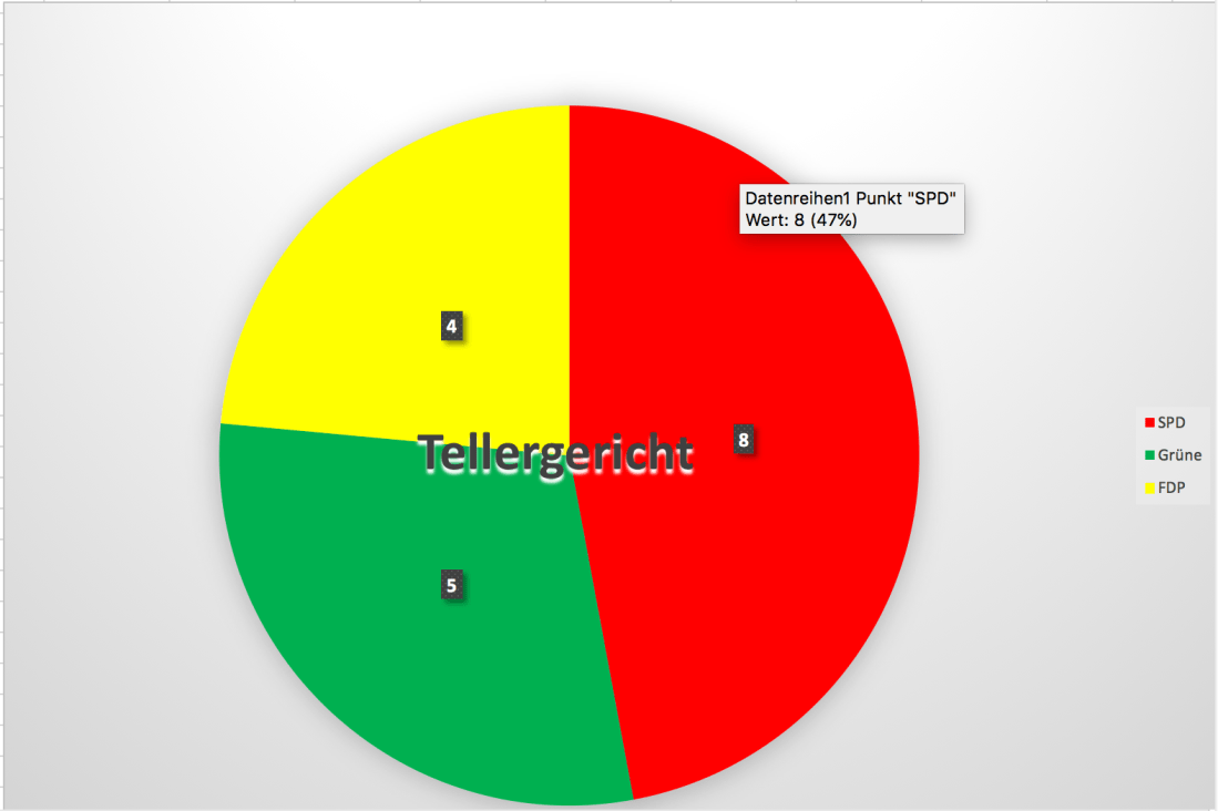 B) rot, gelb, grün gemäß ihrer Stimmenanteile auf einem Teller drapieren. Dann entstünde ein interessantes Tellergericht. Es gäbe recht wenig Rührei, dafür aber mehr Spinat und der Rest bestünde aus Tomatenragout. Nennt sich wohl „Andalusische Spinat-Eier“.