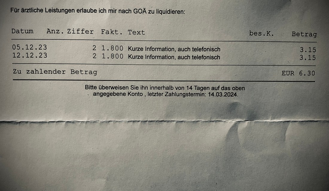Rechter Platz – Arzthelferin: „Am besten, Sie schreiben uns eine E-Mail, dann haben wir alles schriftlich und können das dem Doktor vorlegen.“