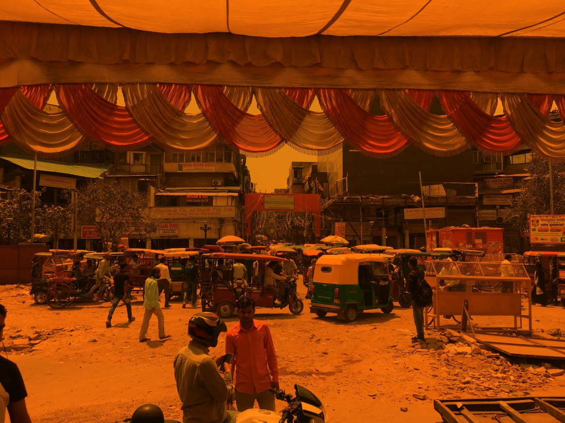 In 2015 zum Beispiel war ich vor Ort und da war alles noch ganz „normal“. Das Gewusel in der Chandni Chowk Road, lässt sich ohne Geräusche, Gerüche und Temperatur kaum beschreiben. Es ist proppenvoll. Menschen, Hunde, Kühe, Affen und Krähen wuseln durcheinander. Genauso wie Fahrrad-Rickshaws, Auto-Rickshaws (a.k.a. Tuk Tuk) Mopeds, Fahrräder und Autos. Ständig hupt irgendwer und Musik tönt aus den Geschäften. In den Shops wird alles Mögliche verkauft, Leder, Gewürze, Musik, Technik. An Fußweg und Straßenrand macht jeder seine Geschäfte, da wird gebettelt, der nächste macht ein Nickerchen, manch einer wacht nie wieder auf, Tagelöhner bieten ihre Dienste an, Hunde liegen mittenmang und es besteht die sehr große Wahrscheinlichkeit, dass man in eine tiefe Pfütze von … man will es nicht wissen … tritt. Biegt man in den Gassen zwei, drei mal ab, fühlt man sich schnell verloren, biegt man zu oft ab, ist man als Bleichgesicht auf einmal ganz allein und fragt sich, ob das nun die beste Idee war. Die Bausubstanz rundherum ist marode, die Elektroleitung hängen kreuz und quer über die Straße, Werbetafeln kaschieren den Verfall. Hier ein paar Bilder aus 2015.