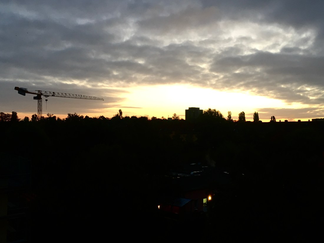 Hat man sich über die Treppe an die Erdoberfläche gekämpft, gibt‘s sofort Großstadt satt. Menschen hetzen in alle Richtungen, Fahrräder, Lastenräder, Roller, Kinderwagen, Hunde, Bettler, Obdachlose und die hippen Mitbürger mittenmang. Die U-Bahn auf der Hochtrecke über den Köpfen, Feuerwehr, Tram-Gerumpel, Müllabfuhr und Paket-Boten in der zweiten Reihe. Ein Geklingel und ein Gehupe. Rufe wie „Hallo Mia, hiaaaaa bin ich“ oder Schreie wie „Haltet ihn“ oder Geschimpfe wie „Ej, sa‘ ma‘ hast’de keene Oogen in Kopp“?