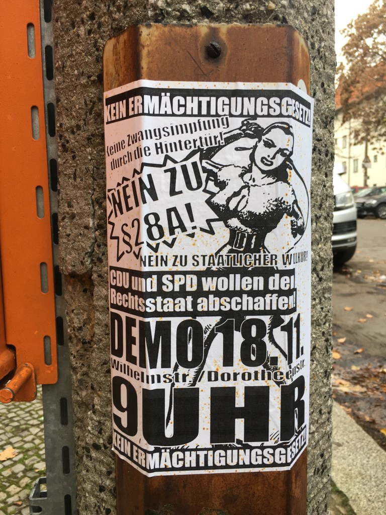 Nachstehend ein Foto von einem Flugblatt, dass ich im Kiez gefunden habe. Ich habe eine Weile überlegt, ob ich diesem Blödsinn hier eine Bühne geben sollte oder besser nicht. Ich habe mich dafür entschieden, nicht weil ich das irgendwie gutheiße, sondern eher um vorzuführen, wie billig da Stimmung gemacht wird. Bloß gut, dass der Wisch gleich neben dem orangen Mülleimer hängt. Denn da gehört er hin.