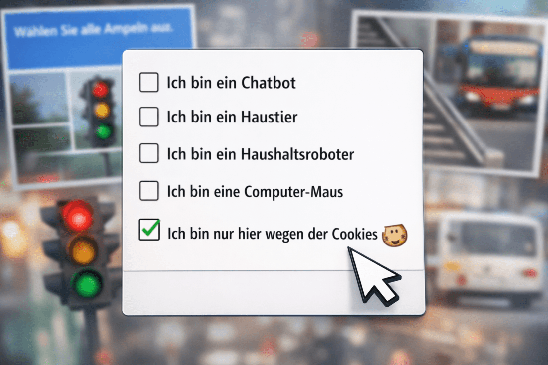 Denn während wir brav das Kästchen anklicken, passiert im Hintergrund die eigentliche Prüfung. Mausbewegung, Timing, Nutzer-Verhalten … alles wird analysiert. Die Checkbox ist nur noch Deko.