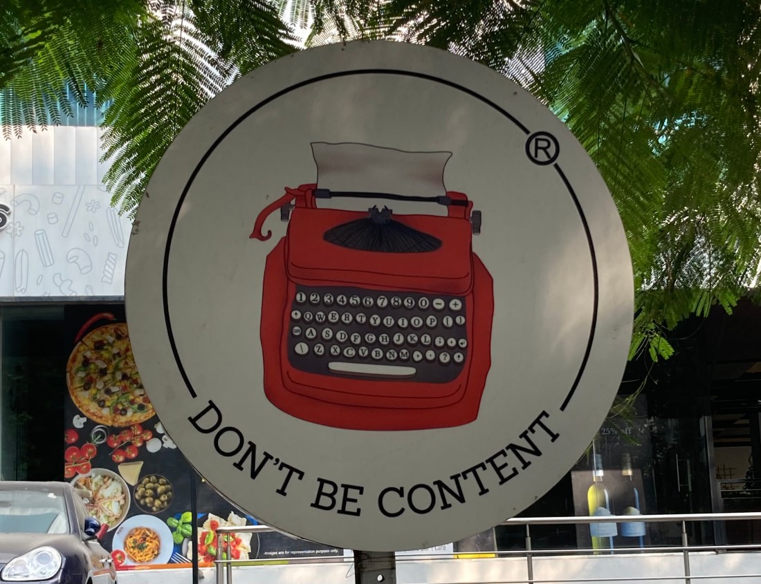„Don’t be Content“. An diesem Schild lief ich während meines längeren Aufenthalts in >Bangalore jeden Tag vorbei. Das Schild stand auf dem Parkplatz einer Pizzeria in der Nähe des Hotels. „Don‘t be content“? Was soll das denn heißen? Ich soll nicht „Inhalt“ sein. Was wäre ich denn ohne Inhalt? Sowohl hier auf dem Blog als auch im Job. Aber irgendwann hab ich’s dann auch kapiert, “content“ kann auch „zufrieden“ heißen, „contentment“ die Zufriedenheit. Ich soll also nicht zufrieden sein, oder mich nicht zufrieden geben. Damit kann ich was anfangen.