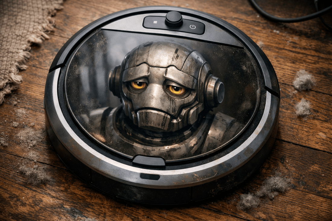 In der Robotik beschäftigt man sich mittlerweile auch damit, den Maschinen menschliche Züge zu verpassen. Dabei geht es um das reine Aussehen, aber auch um Bewegungsabläufe und die Mimik der künstlichen Wesen. Und dann gibt es da noch die emotionale Komponente, also Empathie, Ethik und auch verschiedene Stimmungslagen, die Roboter irgendwann beherrschen sollen. Wenn ich mir unseren Saug-Roboter so anschaue, sieht der zwar immer noch aus wie R2-D2 in platt, aber Stimmungsschwankungen hat der heute schon, wie ein Mädel in der Pubertät. Sorry, dafür. An guten Tagen rollt er zielstrebig durch die Wohnung und bearbeitet jede Fläche mit Leidenschaft. Man könnte meinen, eine Eiskunstläuferin dreht elegant ihre Runden im Wohnzimmer, so schön und akkurat ist das anzusehen. Das Ergebnis bestätigt die Investition. In der Familie heißt er dann liebevoll „Robi“. An manchen Tagen allerdings, scheint er in ein Stimmungs-und Leistungstief zu fallen. Kurz nach dem Abdocken von der Basis-Station, reißt er dann die Kabel der Station mit sich und wickelt sich damit ein. Danach fährt er völlig planlos größer werdende Kreise, bis er endlich eine Wand berührt, die ihm wieder etwas Orientierung verschafft. An solchen düsteren Tagen, steuert er auch gern die Fläche unter dem Küchentisch an, bis er zwischen all den Stuhlbeinen fasst die Kraft verliert. Bloß gut, dass wir keine Treppen in der Wohnung haben, sonst müsste ich mir Sorgen machen, dass er sich da hinunterstürzt. Ich würde ihn dann am liebsten unter die Höhen-Sonne legen, damit er sich wieder fängt und aus seiner Robo-Depression herauskommt. Wenn er mir dann noch ständig hinterherkommt und zwischen die Füße fährt ist Schluss mit “Robi“. Dann werde ich laut: „Du Scheiß-Roboter, siehst du denn nicht, dass ich hier stehe. Fahr’ doch woanders lang, Platz ist doch genug“! Wenn er dann schon nach 45 Minuten zurück zur Station fährt und mit einer Fanfare vermeldet, dass er „fertig“ ist, schicke ich ihn zur Strafe gleich wieder los. Reiss dich zusammen mein Freundchen! Wenn wir hier alle so arbeiten würden, dann könnten wir gleich dicht machen! Vielleicht sollte ich hier im Kiez mal nach einem Coaching-Laden für Roboter Ausschau halten?