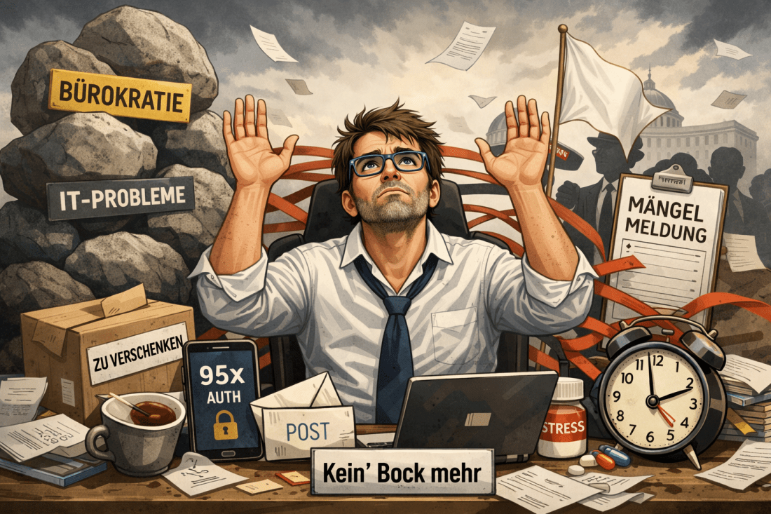 - Wenn ich möchte, dass die Hausverwaltung einfach nur ihren Job macht und endlich ein paar Mängel ernst nimmt, geht niemand ans Telefon oder E-Mails werden grundsätzlich ignoriert.